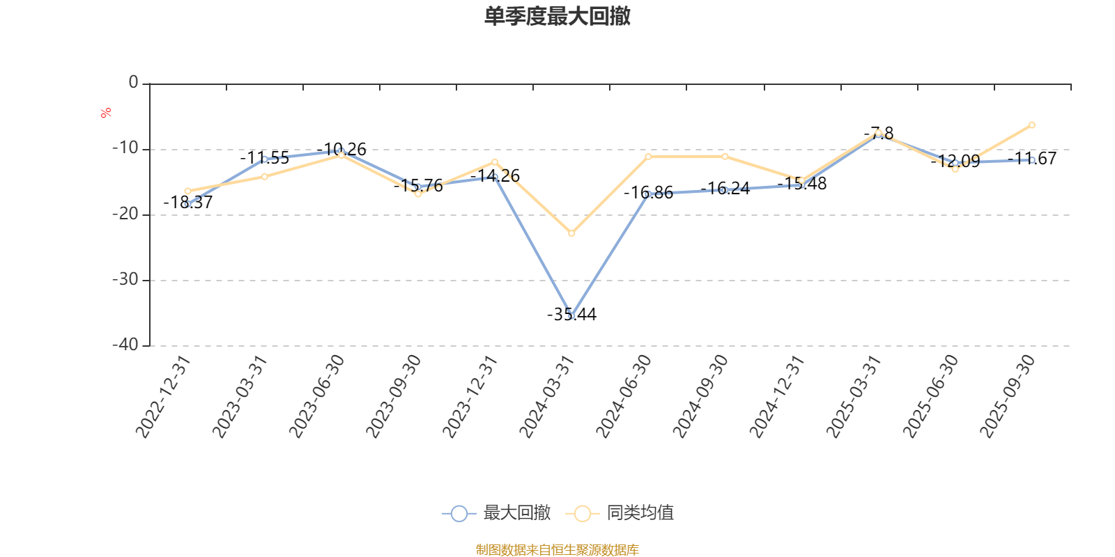 截至10月24日,基金近三年最大回撤为51.53%,同类可比基金排名39/62。单季度最大回撤出现在2024年一季度,为35.44%。