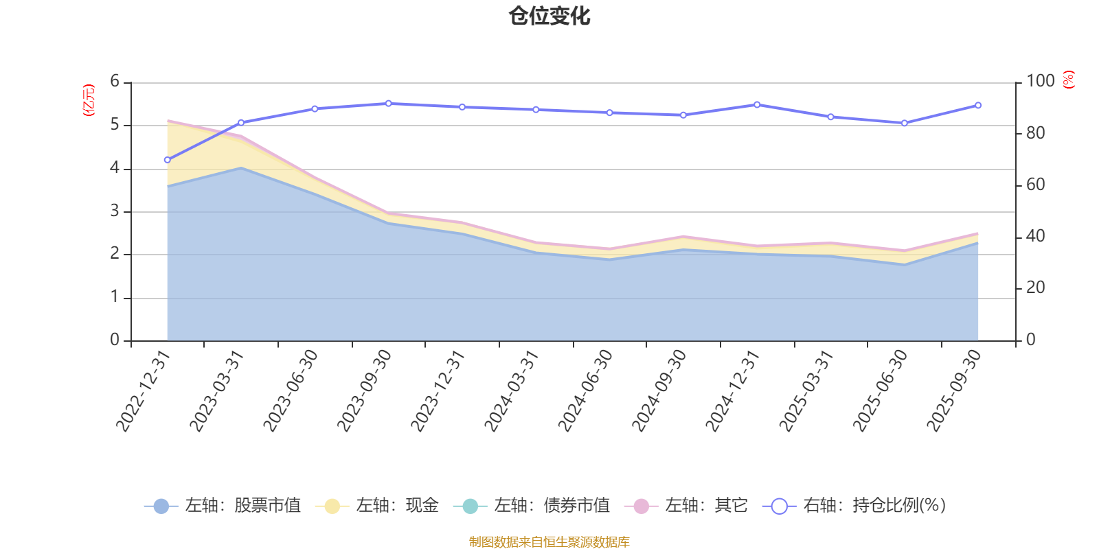 据定期报告数据统计,近三年平均股票仓位为87.08%,同类平均为83.5%。2023年三季度末基金达到91.86%的最高仓位,2022年末最低,为70.01%。