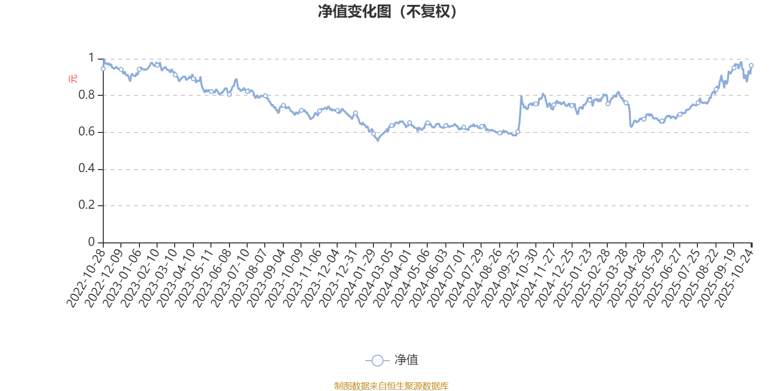 该基金属于偏股混合型基金。截至10月24日,单位净值为0.963元。基金经理是向伊达,目前管理的6只基金近一年均为正收益。其中,截至10月24日,银华战略新兴灵活配置定期开放混合发起式近一年复权单位净值增长率最高,达34.84%;银华领先策略混合最低,为11.35%。