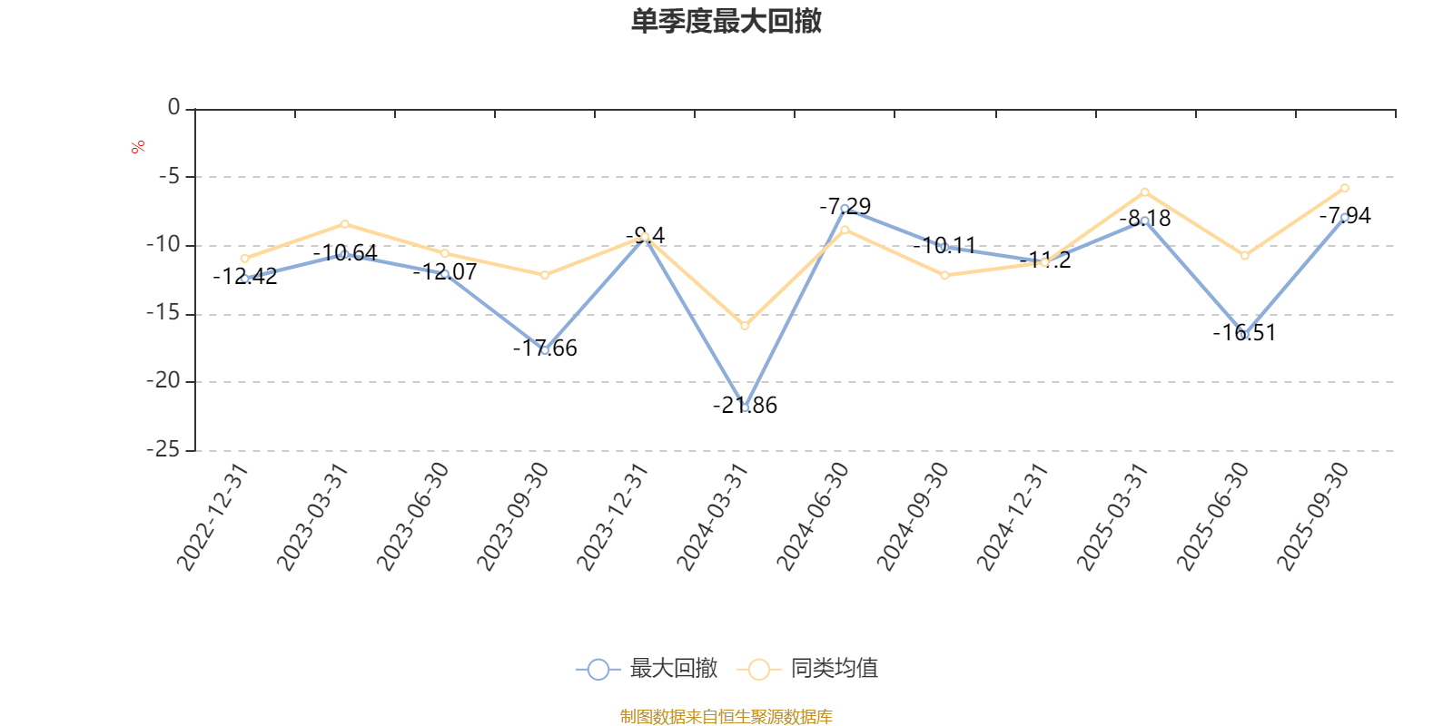 截至10月24日,基金近三年最大回撤为44.93%,同类可比基金排名292/365。单季度最大回撤出现在2024年一季度,为21.86%。