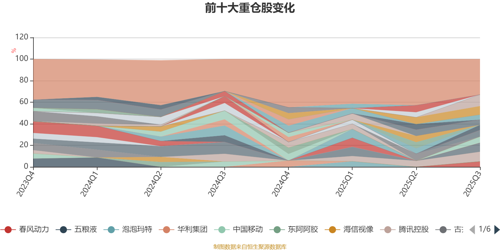 该基金持股集中度较高。截至2025年三季度末,基金十大重仓股分别是阿里巴巴-W、腾讯控股、美的集团、杭州银行、香港交易所、福耀玻璃、春风动力、匠心家居、海大集团、小米集团-W。