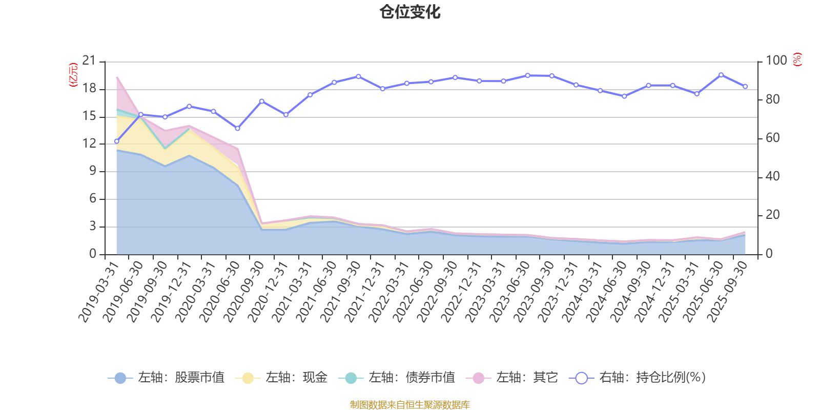据定期报告数据统计,近三年平均股票仓位为88.21%,同类平均为72.17%。2025年上半年末基金达到93.05%的最高仓位,2019年一季度末最低,为58.69%。