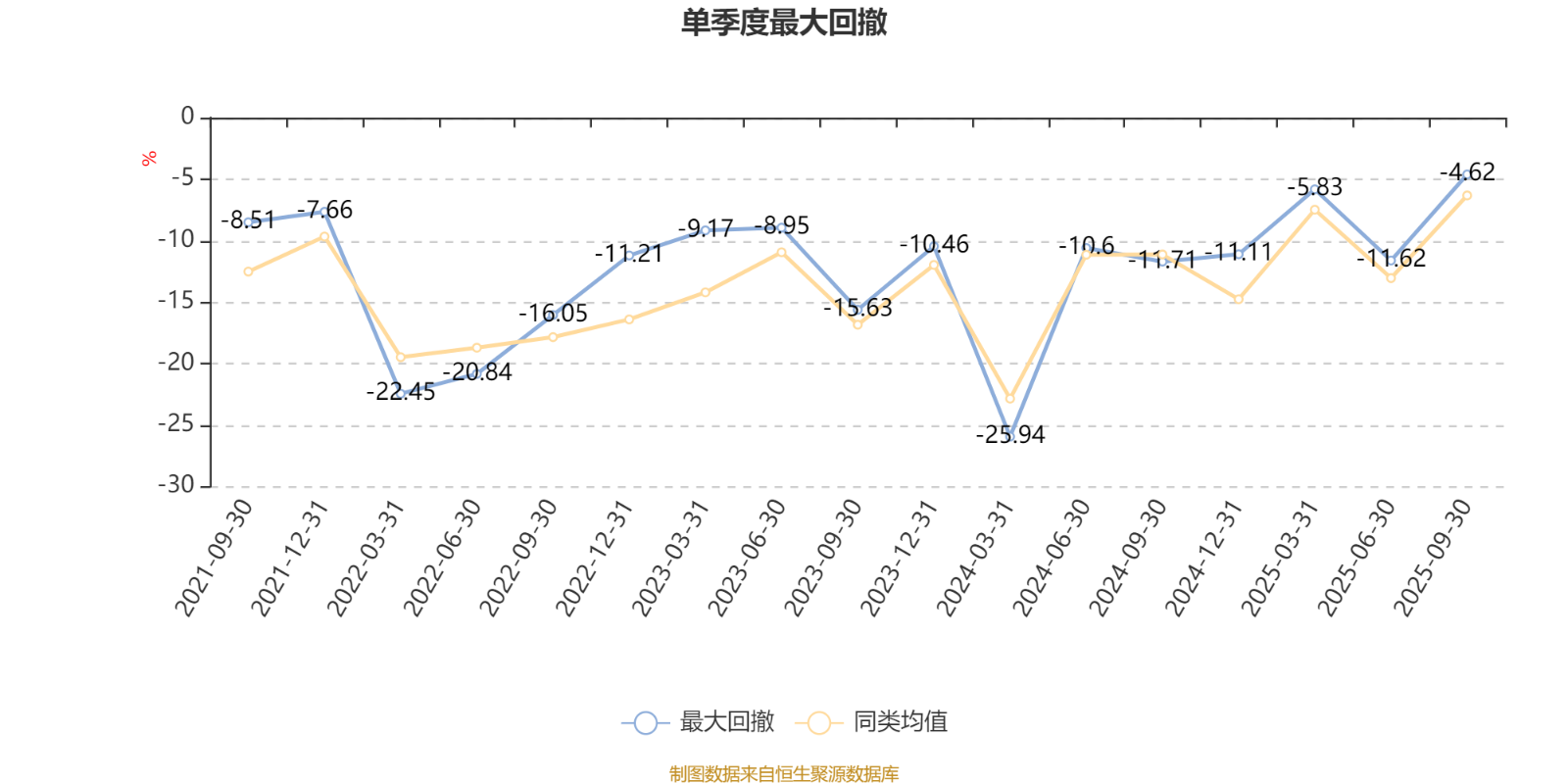 截至10月27日,基金近三年最大回撤为37.01%,同类可比基金排名9/61。单季度最大回撤出现在2024年一季度,为25.94%。