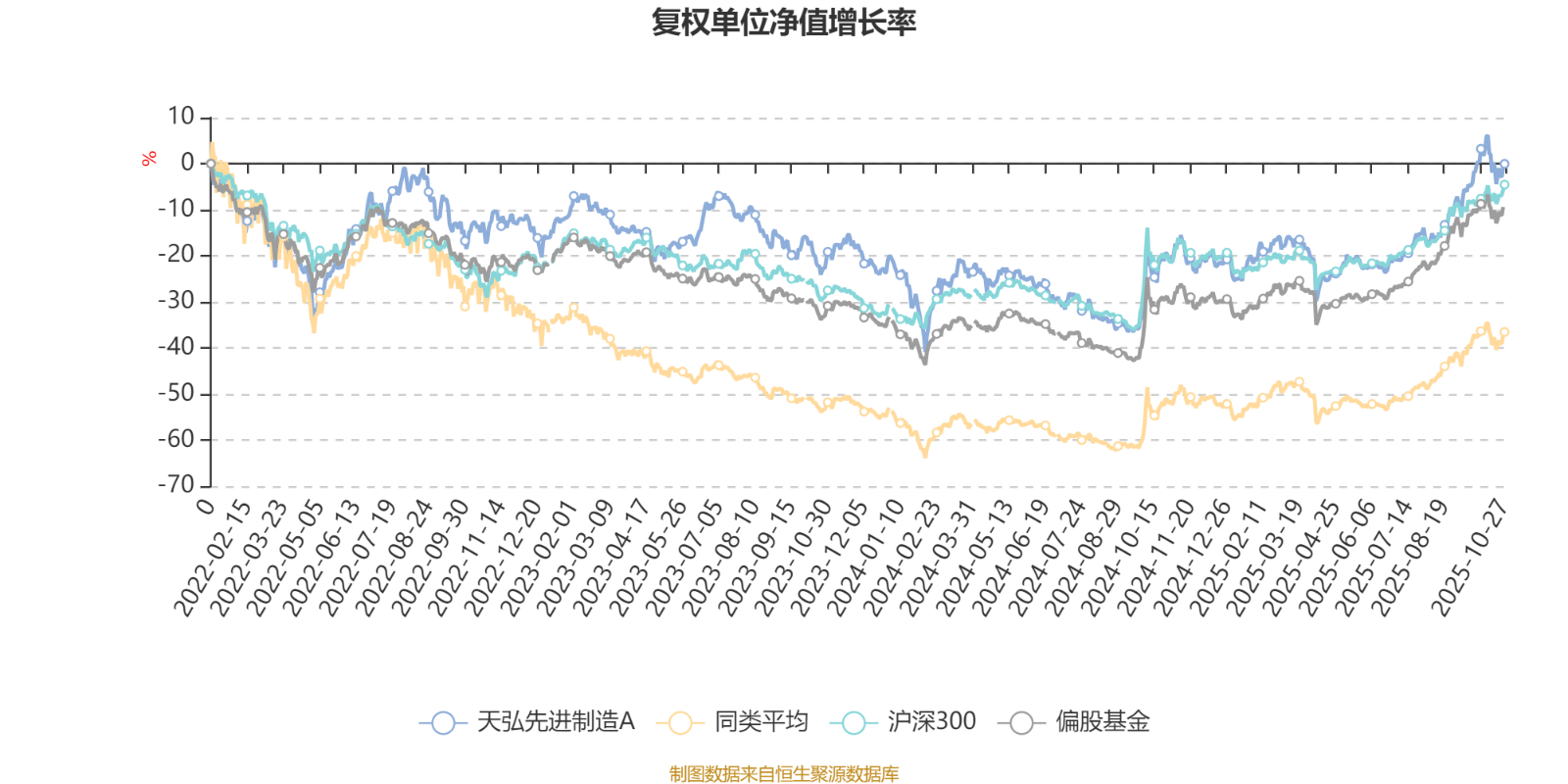 截至10月27日,天弘先进制造A近三个月复权单位净值增长率为18.06%,位于同类可比基金60/100;近半年复权单位净值增长率为31.23%,位于同类可比基金54/99;近一年复权单位净值增长率为23.88%,位于同类可比基金49/90;近三年复权单位净值增长率为17.17%,位于同类可比基金16/62。