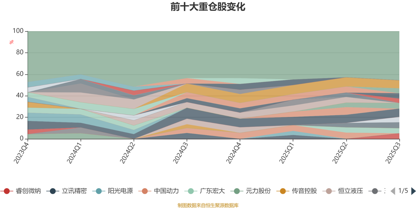 截至2025年三季度末,基金十大重仓股分别是宁德时代、吉利汽车、中航沈飞、厦钨新能、睿创微纳、腾讯控股、中芯国际、广东宏大、先导智能、优必选。