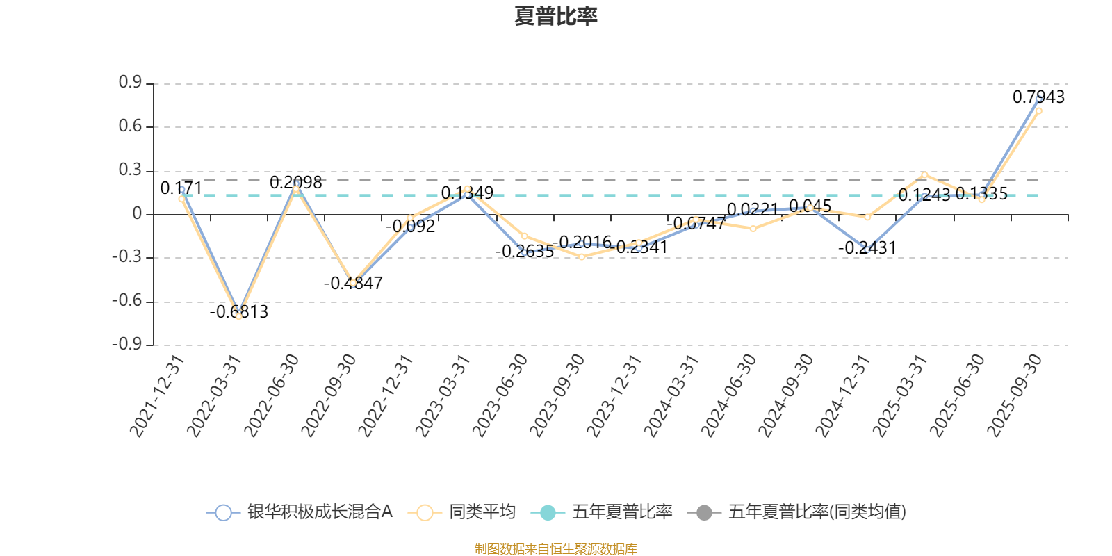 截至9月30日,基金近三年夏普比率为0.2411,位于同类可比基金420/518。