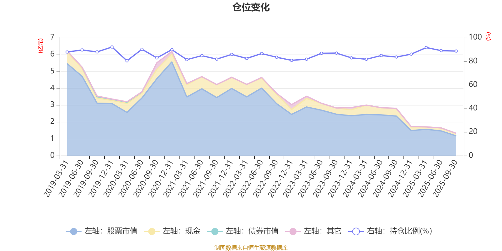 据定期报告数据统计,近三年平均股票仓位为85.39%,同类平均为85.51%。2019年末基金达到92.07%的最高仓位,2020年一季度末最低,为80.4%。