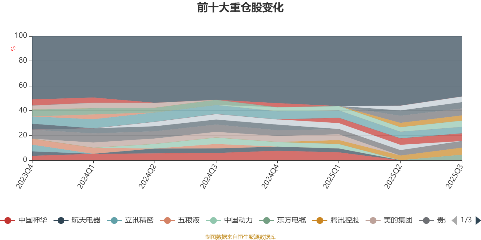 截至2025年三季度末,基金十大重仓股分别是宁德时代、中国平安、腾讯控股、贵州茅台、海尔智家、恒瑞医药、杭州银行、晶方科技、东方电缆、中天科技。