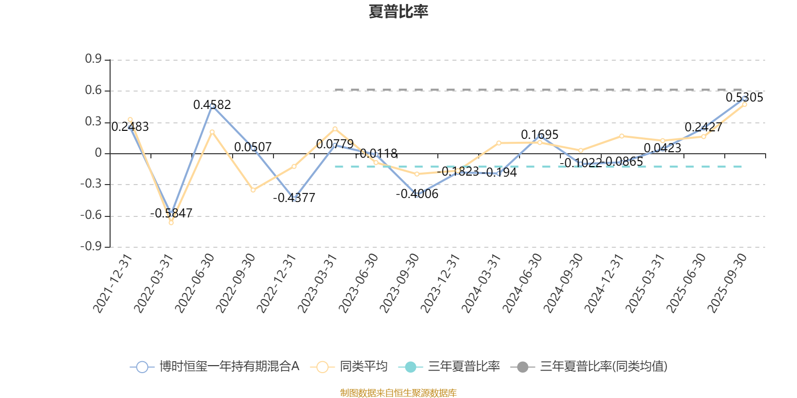 截至9月30日,基金近三年夏普比率为-0.1271,位于同类可比基金515/553。