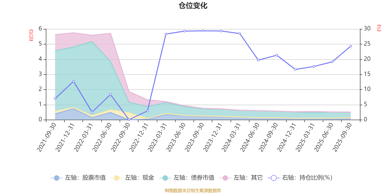 据定期报告数据统计,近三年平均股票仓位为22.2%,同类平均为19.03%。2023年三季度末基金达到29.39%的最高仓位,2022年三季度末最低,为0.02%。