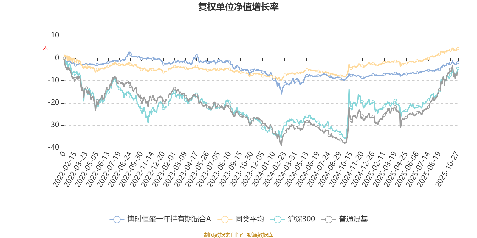 截至10月27日,博时恒玺一年持有期混合A近三个月复权单位净值增长率为4.08%,位于同类可比基金175/629;近半年复权单位净值增长率为5.44%,位于同类可比基金316/629;近一年复权单位净值增长率为6.19%,位于同类可比基金385/623;近三年复权单位净值增长率为-2.09%,位于同类可比基金539/557。