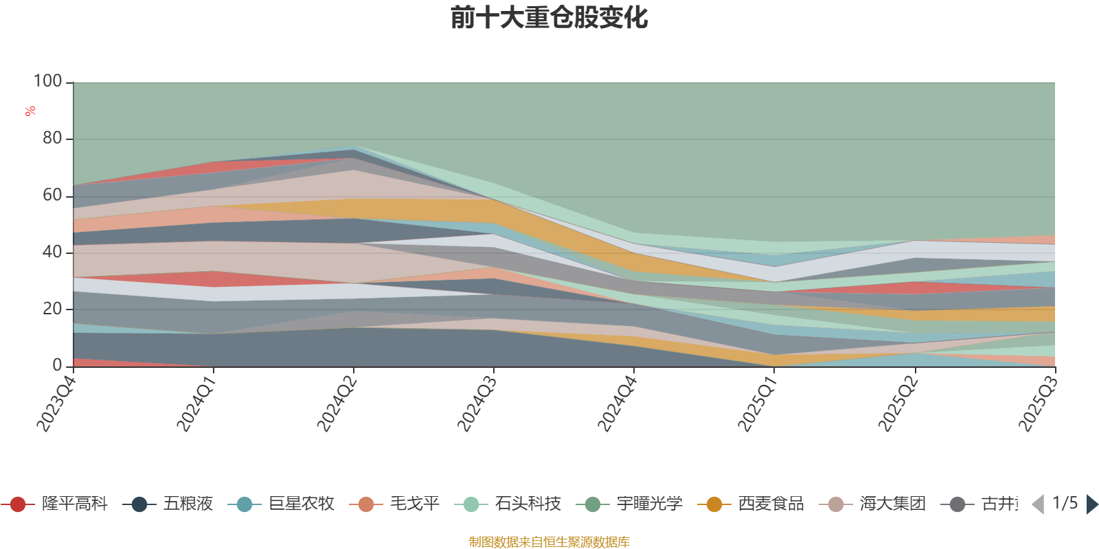 截至2025年三季度末,基金十大重仓股分别是牧原股份、滔搏、阿里巴巴-W、优然牧业、宇瞳光学、石头科技、燕京啤酒、毛戈平、东鹏饮料、六福集团。