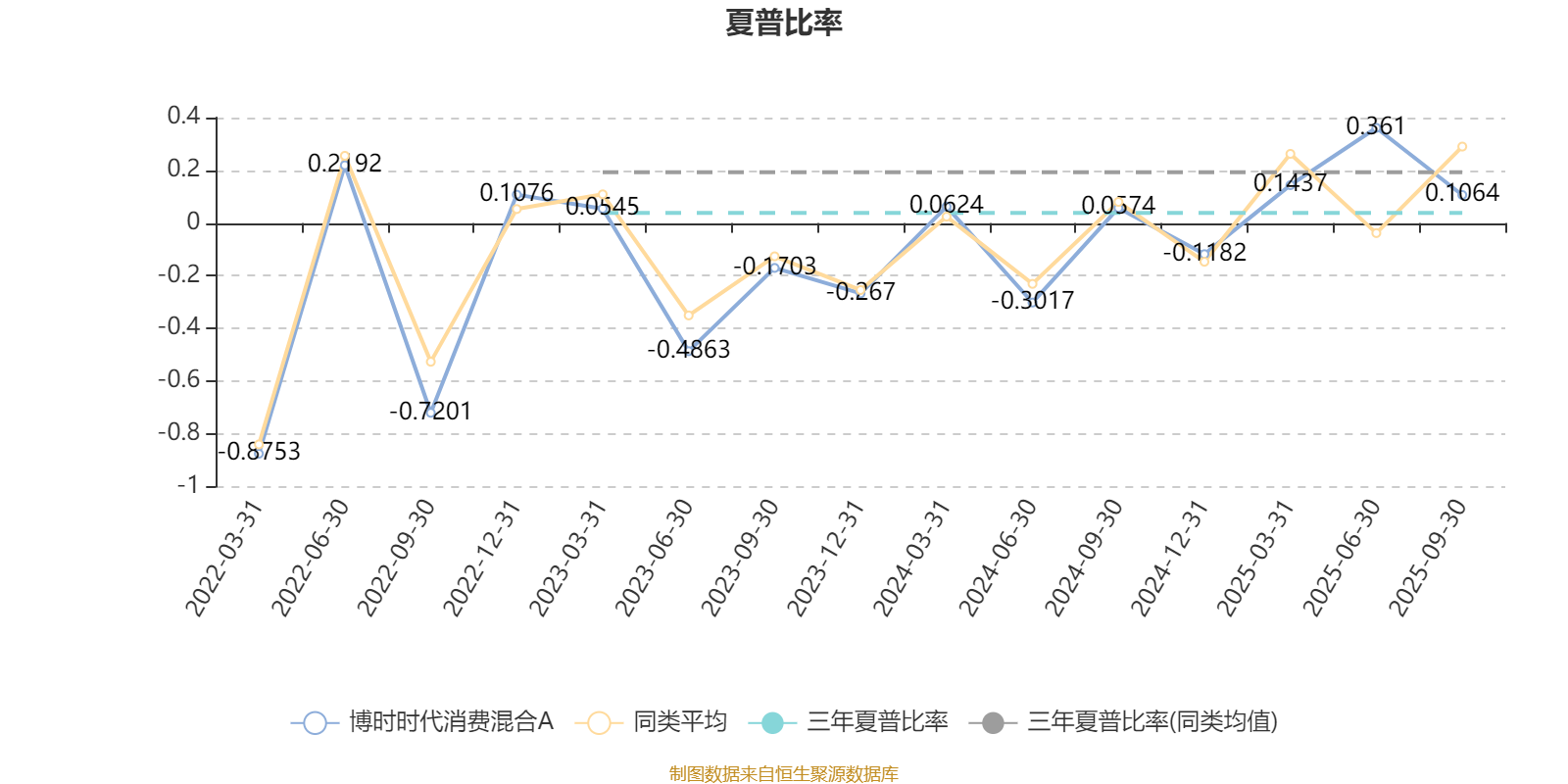 截至9月30日,基金近三年夏普比率为0.0382,位于同类可比基金60/74。