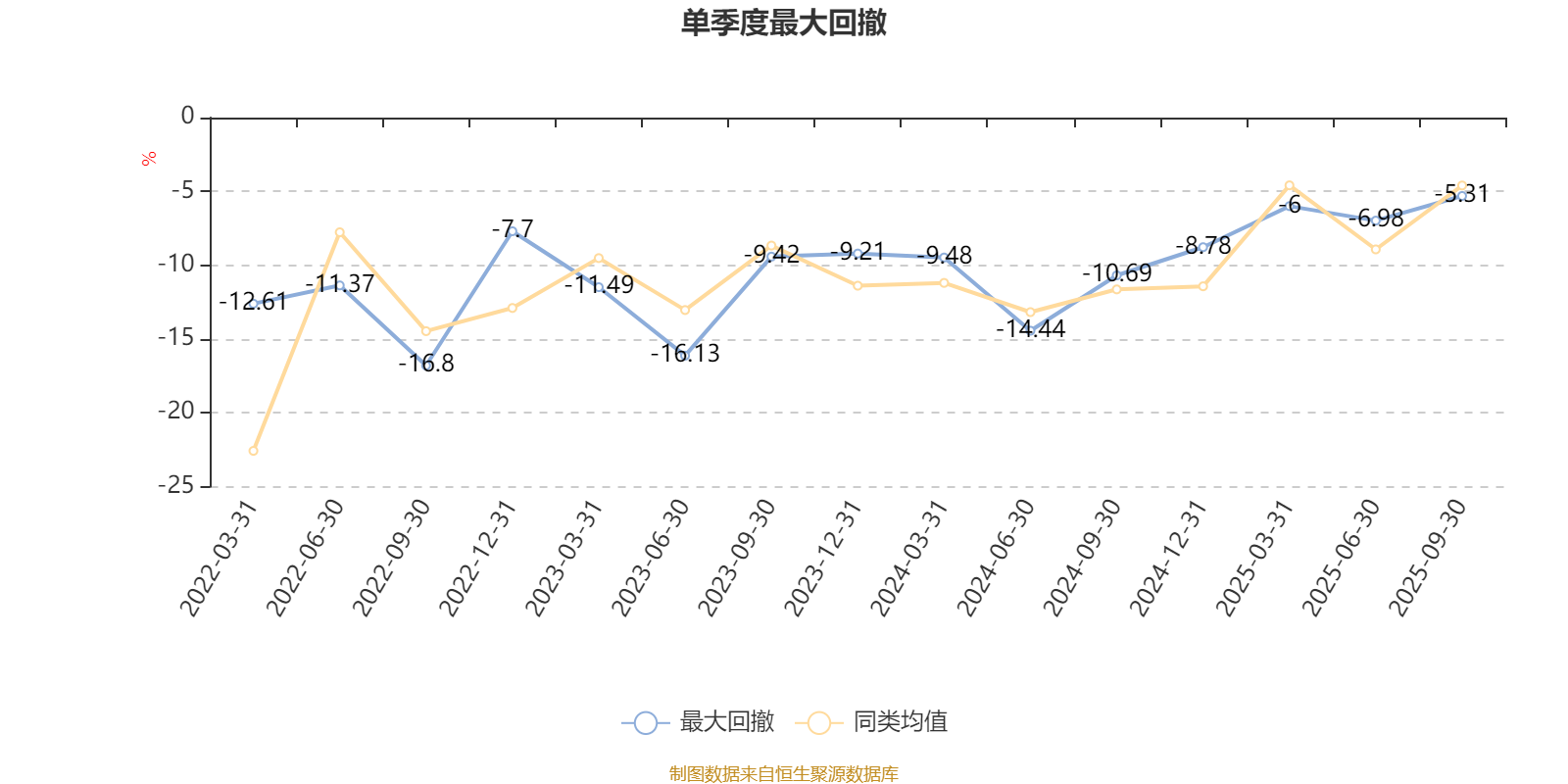 截至10月27日,基金近三年最大回撤为41.93%,同类可比基金排名54/74。单季度最大回撤出现在2022年三季度,为16.8%。