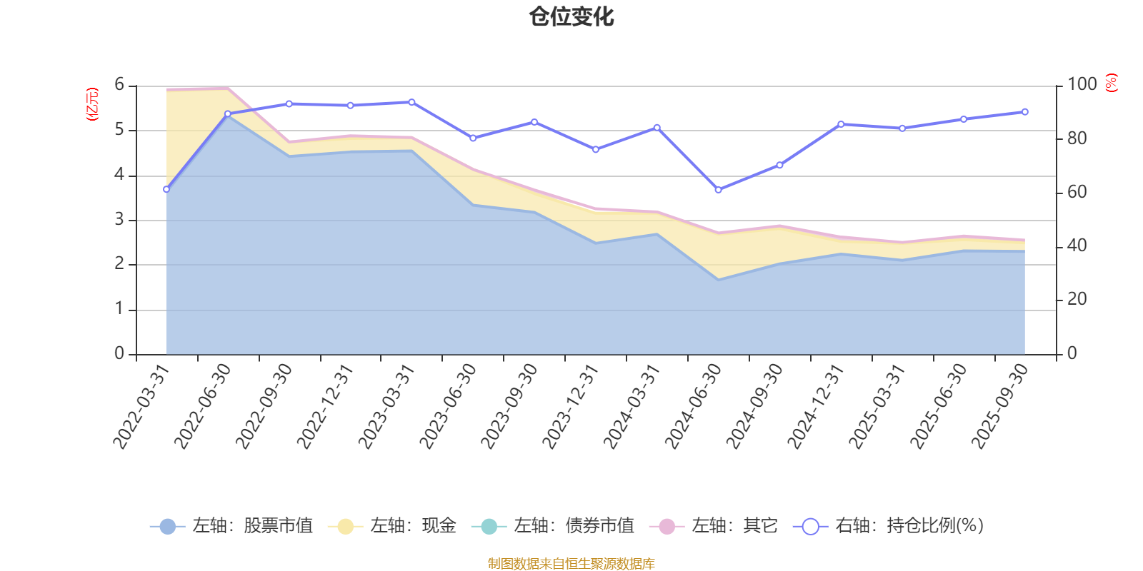 据定期报告数据统计,近三年平均股票仓位为82.78%,同类平均为87.15%。2023年一季度末基金达到93.86%的最高仓位,2024年上半年末最低,为61.24%。