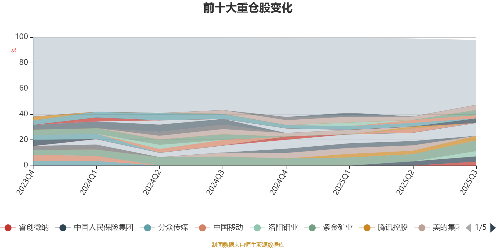 截至2025年三季度末,基金十大重仓股分别是宁德时代、紫金矿业、洛阳钼业、工业富联、蓝思科技、中国人民保险集团、腾讯控股、中芯国际、睿创微纳、中国平安。
