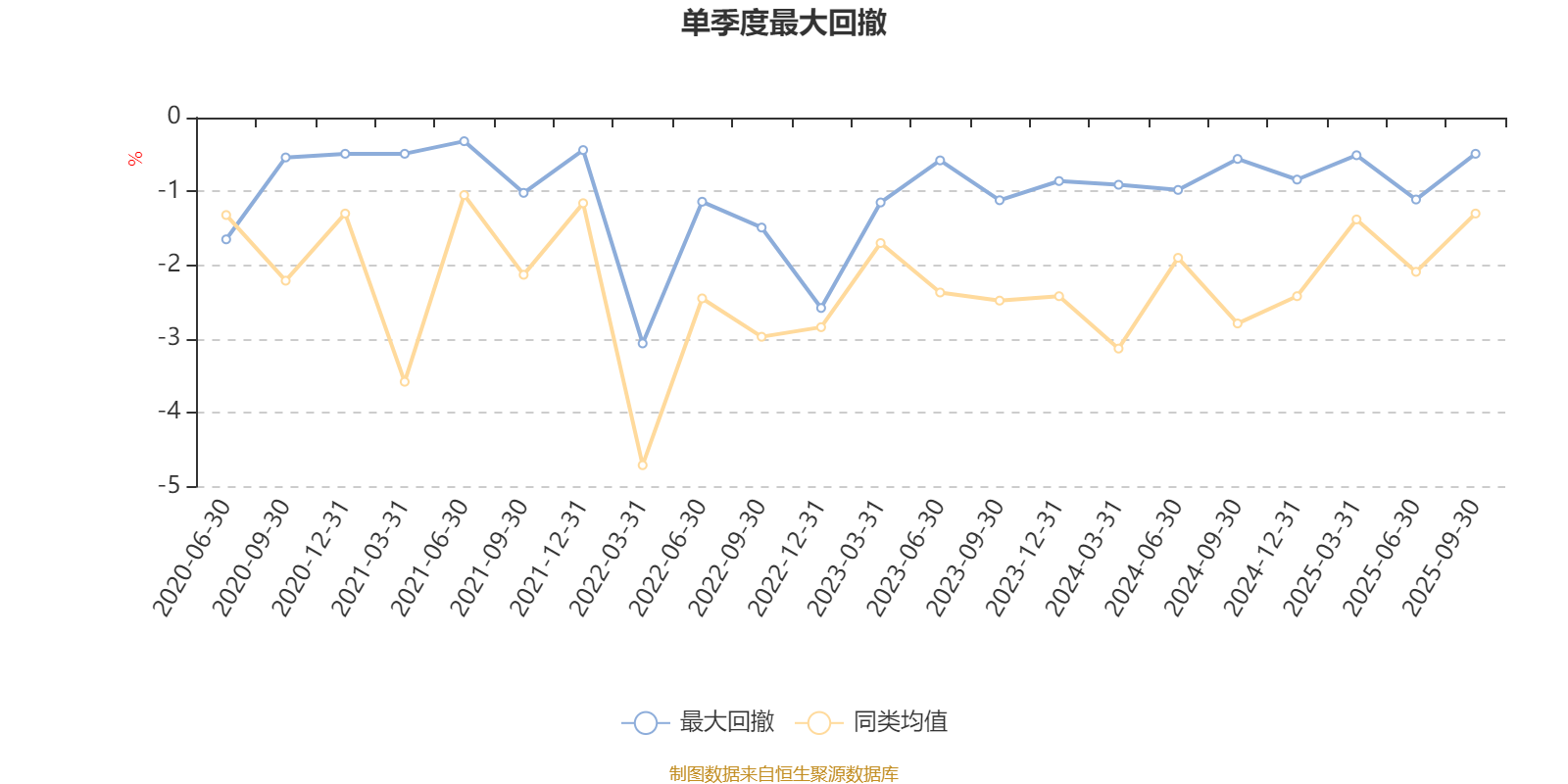 截至10月24日,基金近三年最大回撤为2.58%,同类可比基金排名41/552。单季度最大回撤出现在2022年一季度,为3.06%。