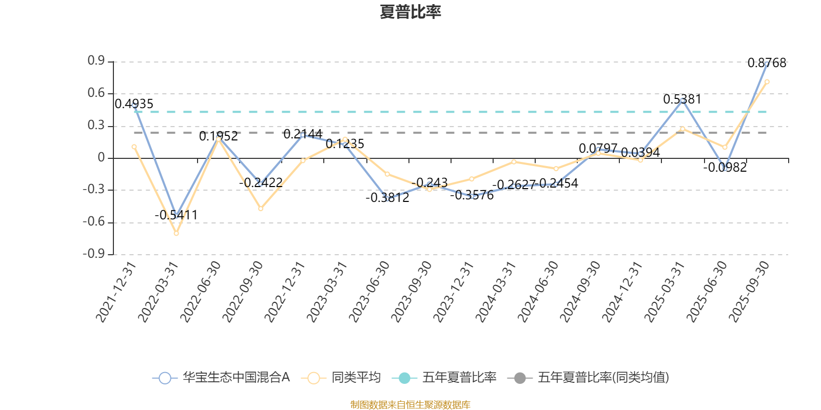 截至9月30日,基金近三年夏普比率为0.3551,位于同类可比基金364/518。