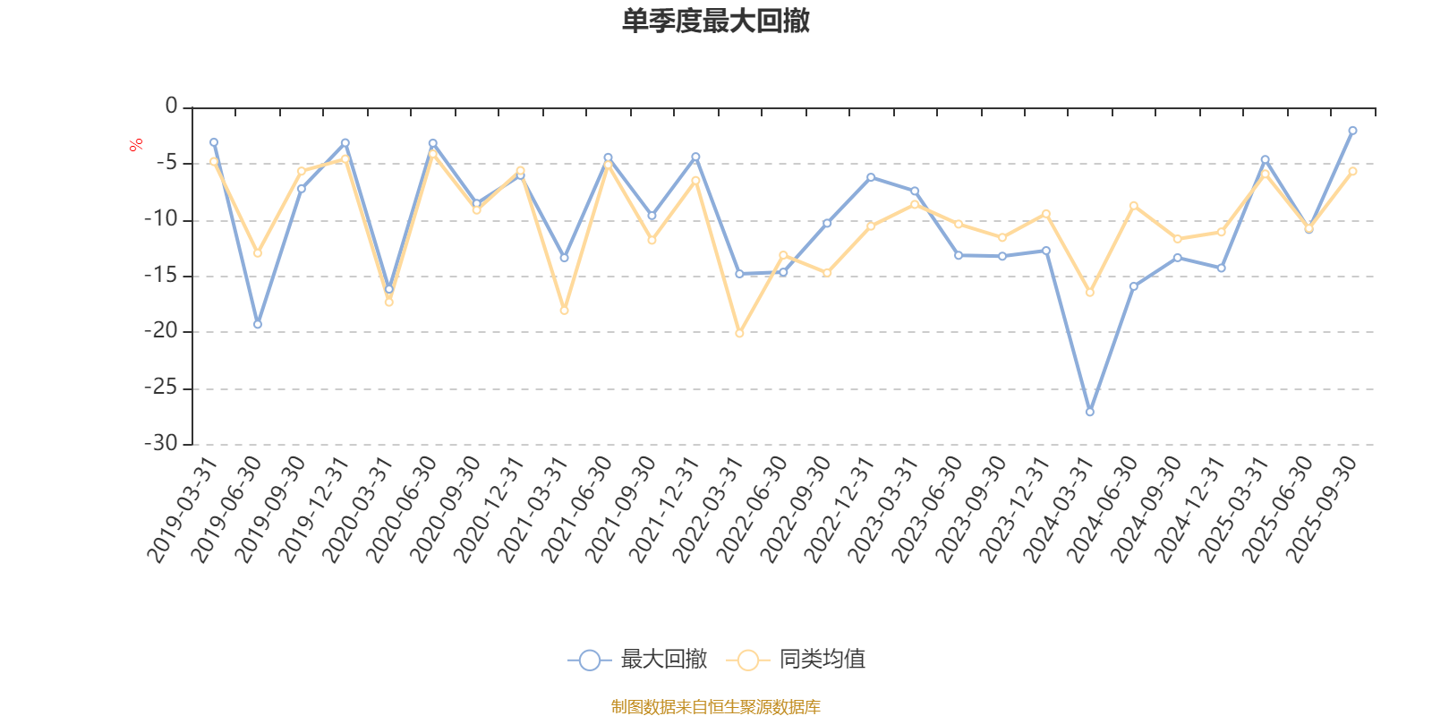 截至10月27日,基金近三年最大回撤为51.95%,同类可比基金排名496/513。单季度最大回撤出现在2024年一季度,为27.11%。