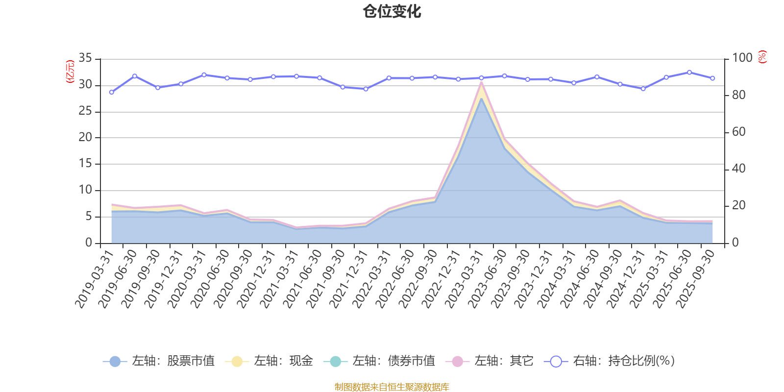 据定期报告数据统计,近三年平均股票仓位为88.87%,同类平均为85.55%。2025年上半年末基金达到92.66%的最高仓位,2019年一季度末最低,为81.9%。