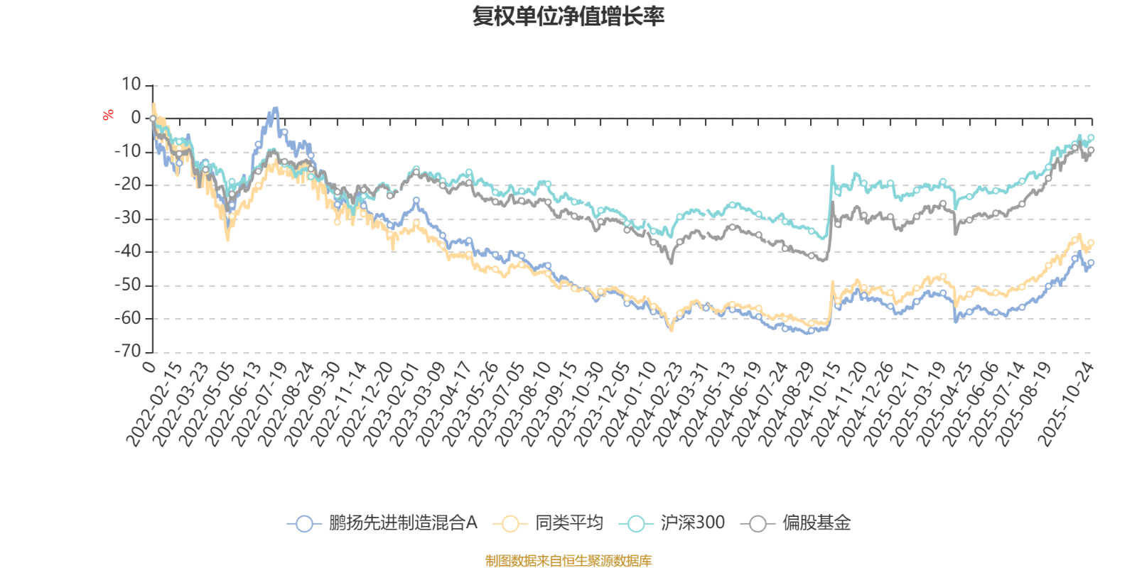 截至10月24日,鹏扬先进制造混合A近三个月复权单位净值增长率为25.17%,位于同类可比基金32/100;近半年复权单位净值增长率为35.57%,位于同类可比基金38/99;近一年复权单位净值增长率为28.04%,位于同类可比基金45/90;近三年复权单位净值增长率为-21.59%,位于同类可比基金48/62。