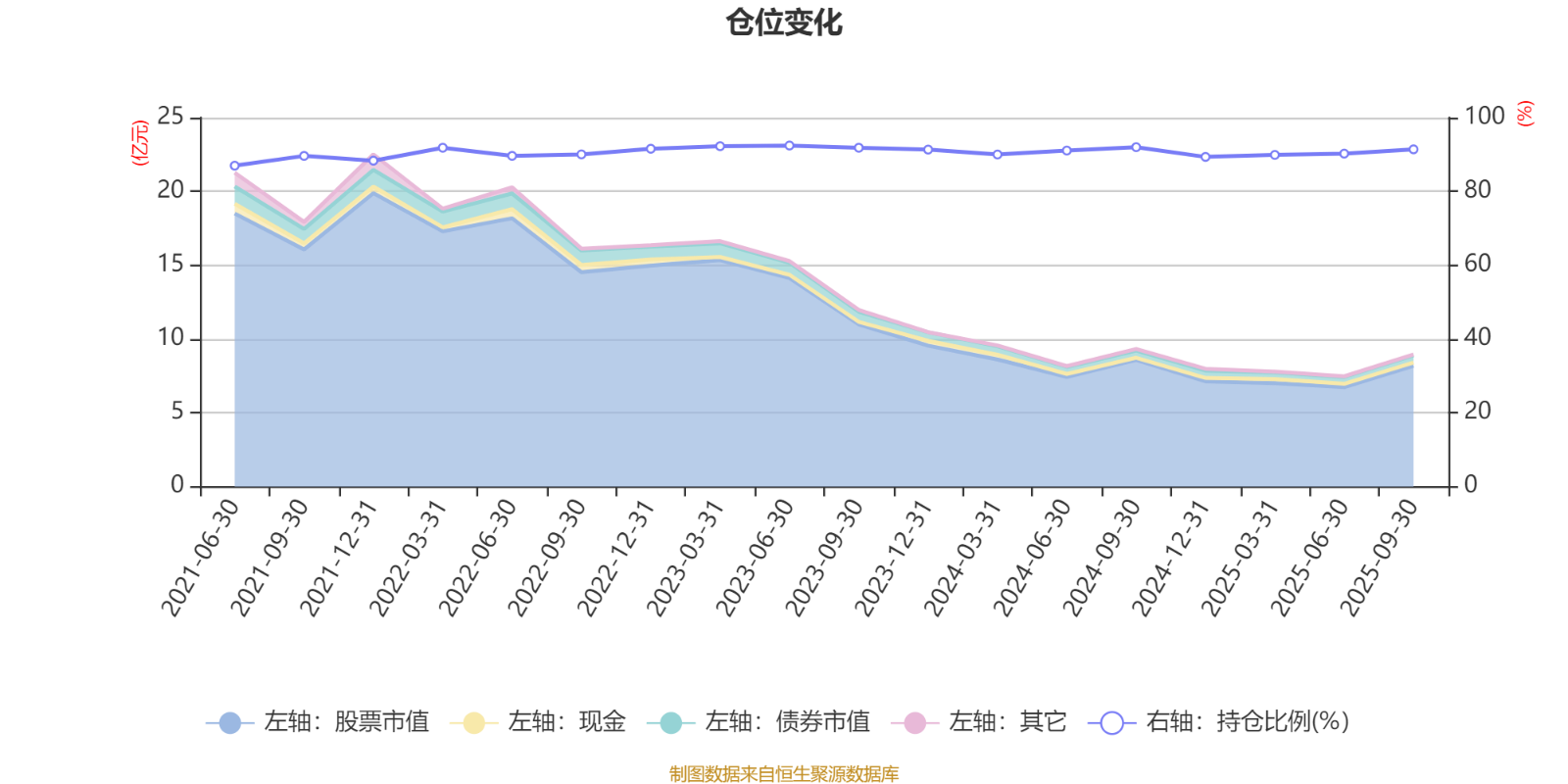 据定期报告数据统计,近三年平均股票仓位为91.11%,同类平均为87%。2023年上半年末基金达到92.43%的最高仓位,2021年上半年末最低,为86.97%。