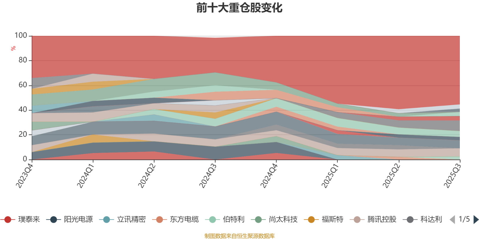 截至2025年三季度末,基金十大重仓股分别是中芯国际、腾讯控股、宁德时代、德业股份、德赛西威、七一二、拓普集团、兆易创新、特锐德、伯特利。