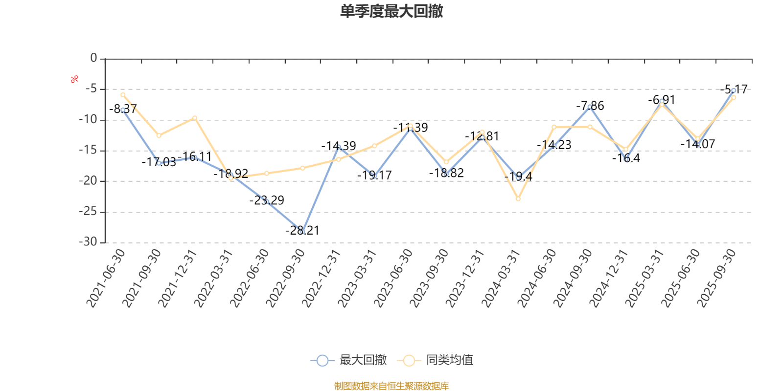 截至10月24日,基金近三年最大回撤为54.26%,同类可比基金排名49/62。单季度最大回撤出现在2022年三季度,为28.21%。