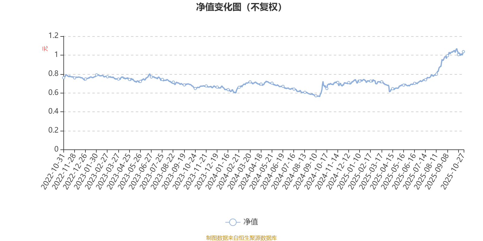 该基金属于灵活配置型基金。截至10月27日,单位净值为1.036元。基金经理是吴渭,目前管理的3只基金近一年均为正收益。其中,截至10月27日,博时汇荣回报混合A近一年复权单位净值增长率最高,达77.15%;博时汇兴回报一年持有期混合最低,为48.45%。