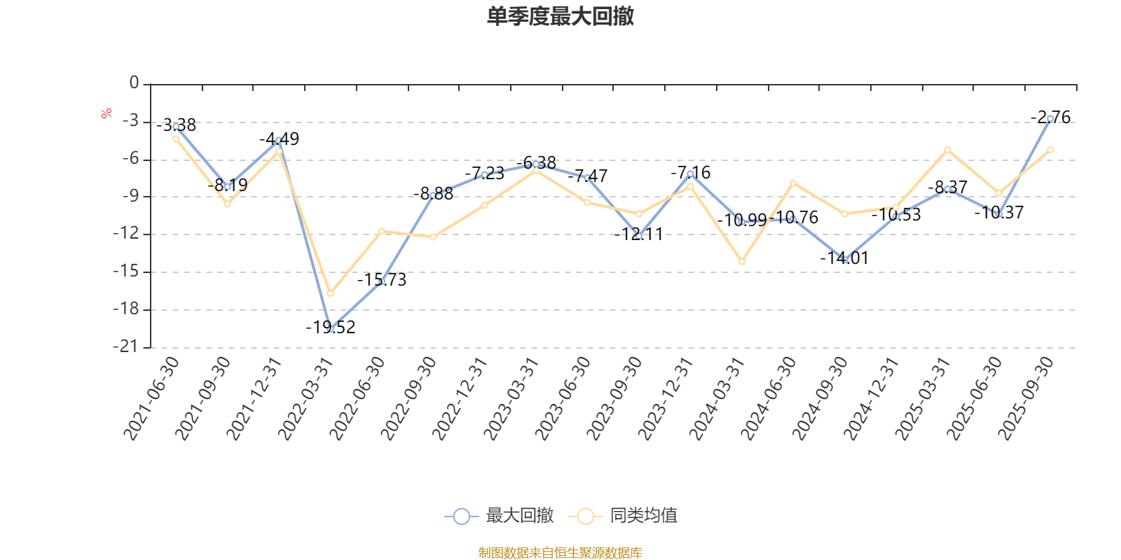 截至10月27日,基金近三年最大回撤为30.08%,同类可比基金排名549/1274。单季度最大回撤出现在2022年一季度,为19.52%。