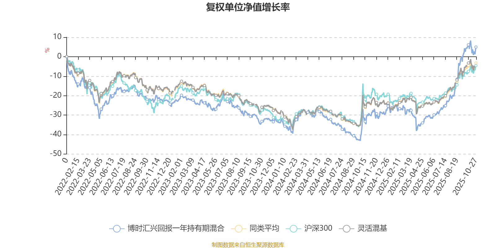 截至10月27日,博时汇兴回报一年持有期混合近三个月复权单位净值增长率为34.55%,位于同类可比基金143/1287;近半年复权单位净值增长率为59.19%,位于同类可比基金101/1287;近一年复权单位净值增长率为48.45%,位于同类可比基金177/1287;近三年复权单位净值增长率为35.23%,位于同类可比基金273/1286。