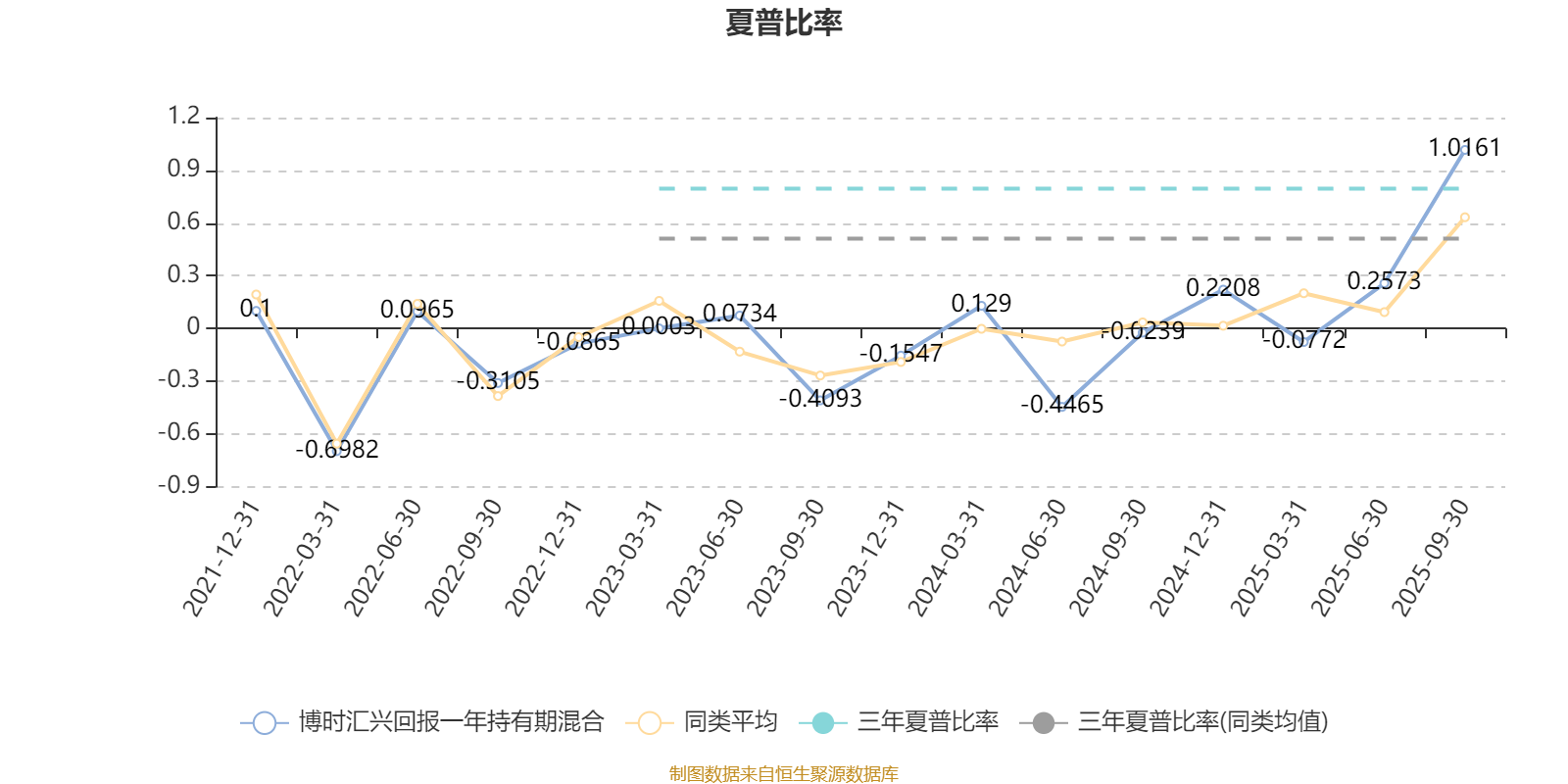 截至9月30日,基金近三年夏普比率为0.7956,位于同类可比基金263/1285。