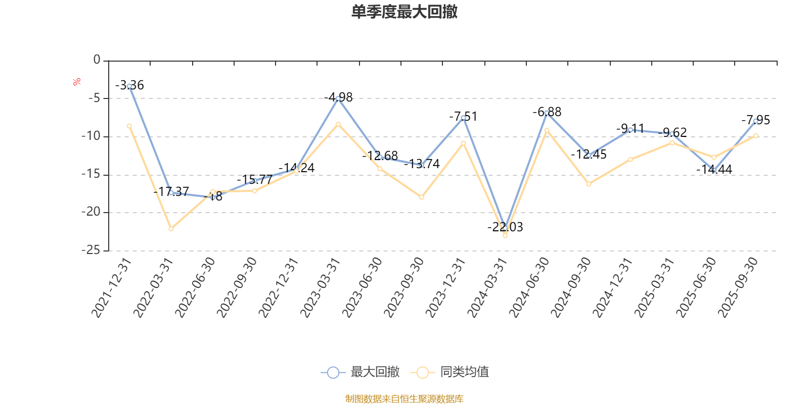 截至10月27日,基金近三年最大回撤为31.54%,同类可比基金排名10/159。单季度最大回撤出现在2024年一季度,为22.03%。
