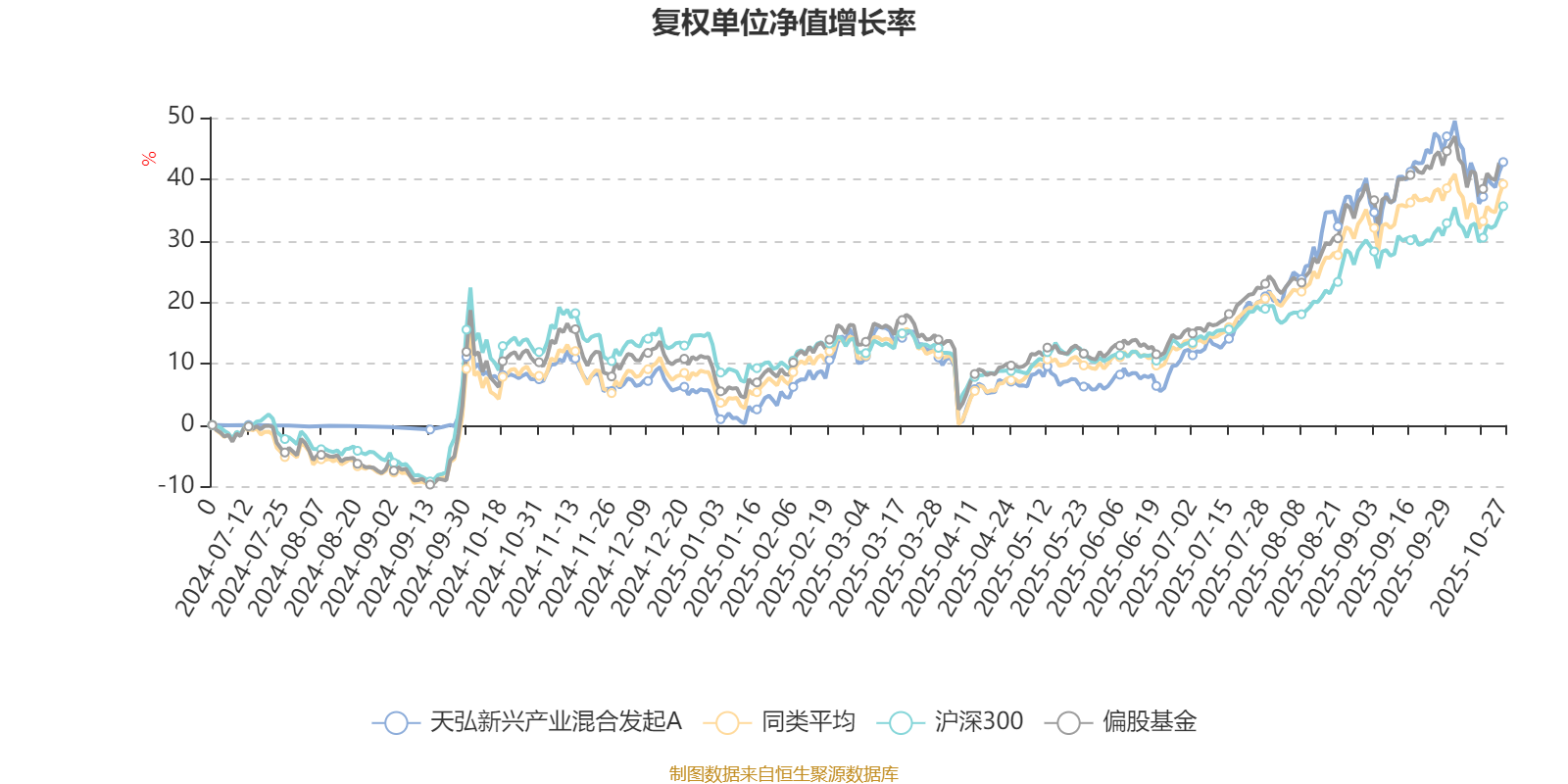 截至10月27日,天弘新兴产业混合发起A近三个月复权单位净值增长率为18.78%,位于同类可比基金242/689;近半年复权单位净值增长率为33.52%,位于同类可比基金251/688;近一年复权单位净值增长率为32.12%,位于同类可比基金251/653。