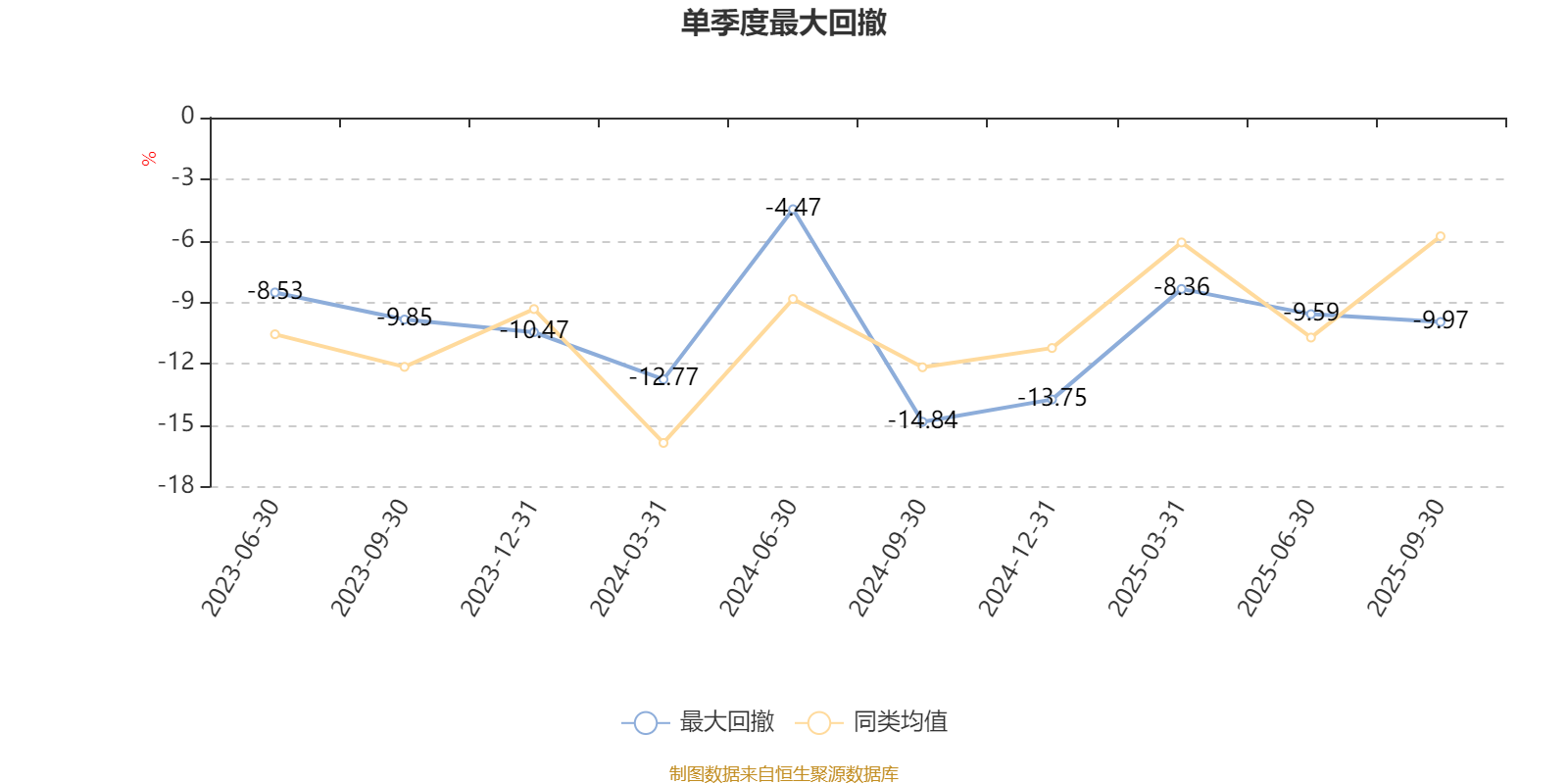 通过所选区间该基金净值增长率分位图,可以观察该基金与同类基金业绩比较情况。图为坐标原点到区间内某时点的净值增长率在同类基金中的分位数。