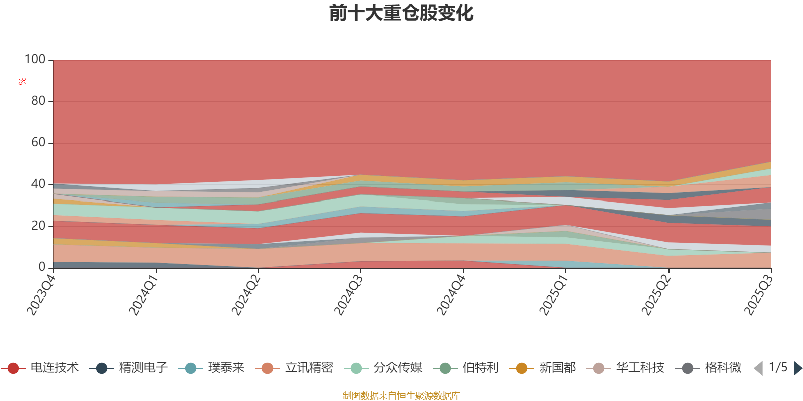 截至2025年三季度末,基金十大重仓股分别是宁德时代、立讯精密、工业富联、新易盛、思特威、科达利、蓝思科技、东睦股份、顺络电子、歌尔股份。