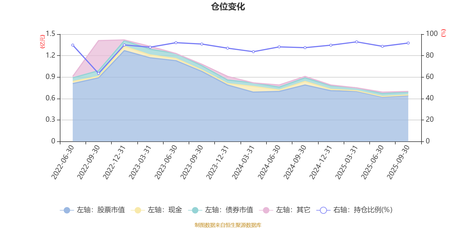 据定期报告数据统计,近三年平均股票仓位为89.19%,同类平均为83.5%。2025年一季度末基金达到92.86%的最高仓位,2022年三季度末最低,为63.46%。