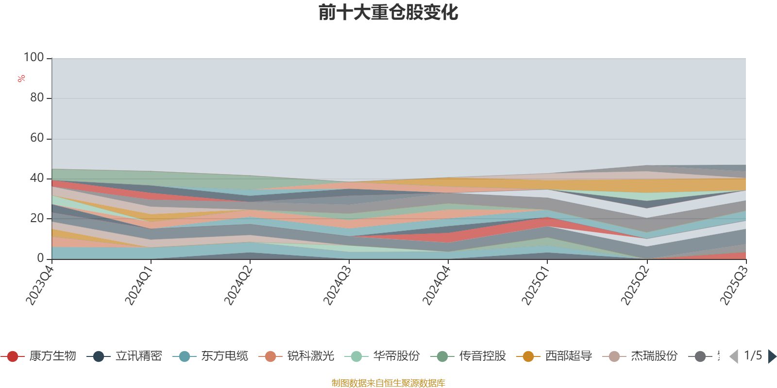 基金管理人在三季报中表示,操作方面,本基金本报告期内增持了电子、化工、电池、医疗器械、农业等个股,减持了非银、化学药、家电等个股,主要是个股选择与持仓结构调整,整体仓位变化不大。