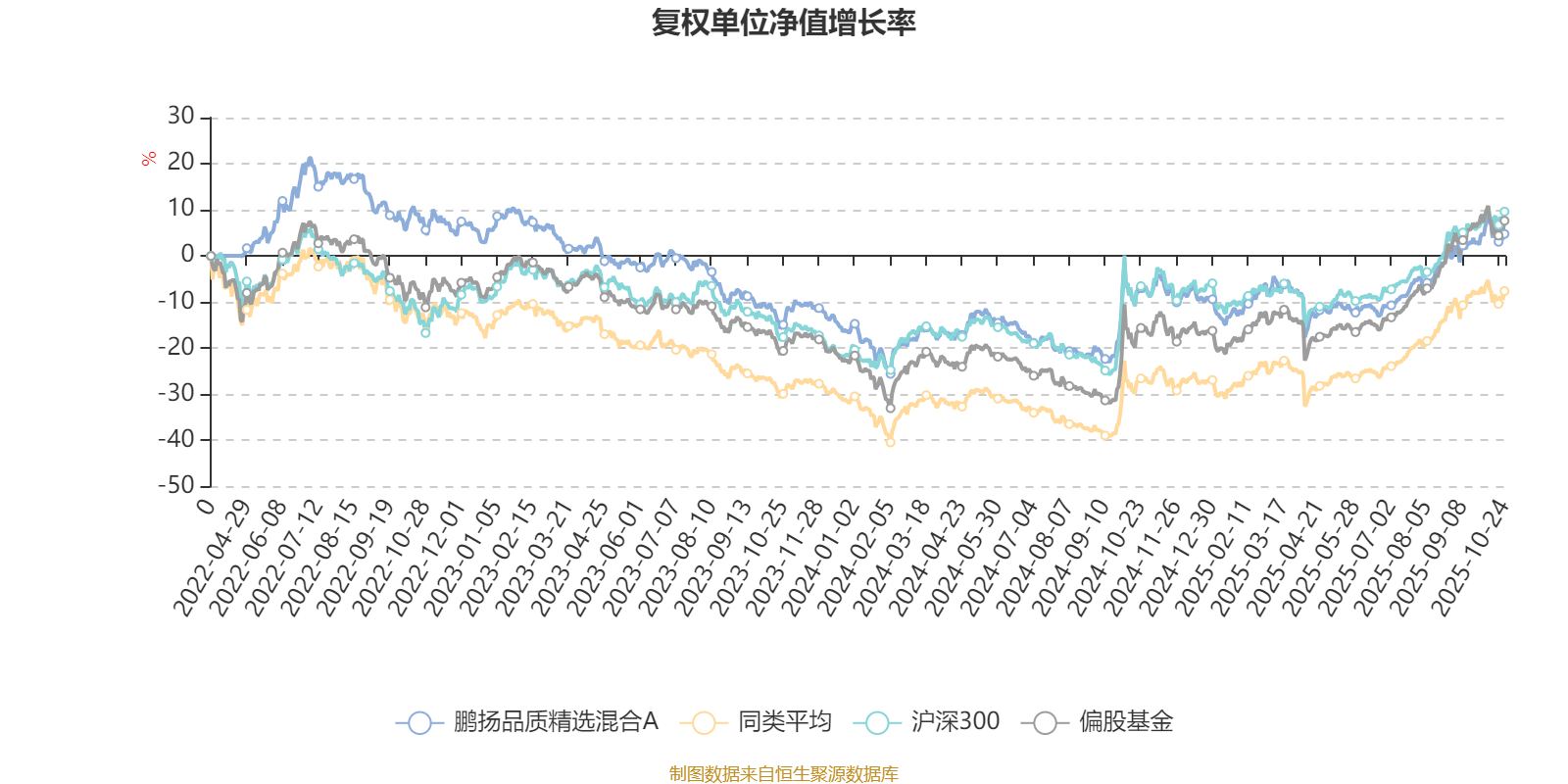 截至10月24日,鹏扬品质精选混合A近三个月复权单位净值增长率为10.27%,位于同类可比基金418/689;近半年复权单位净值增长率为18.52%,位于同类可比基金487/688;近一年复权单位净值增长率为13.71%,位于同类可比基金530/653;近三年复权单位净值增长率为-2.72%,位于同类可比基金258/363。