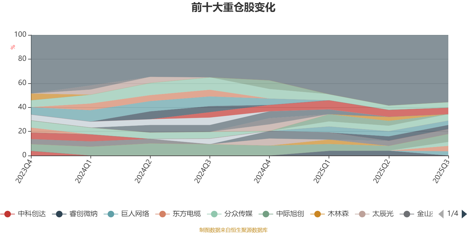 截至2025年三季度末,基金十大重仓股分别是中际旭创、胜宏科技、恺英网络、新易盛、东方电缆、金山办公、完美世界、巨人网络、百利天恒、分众传媒。