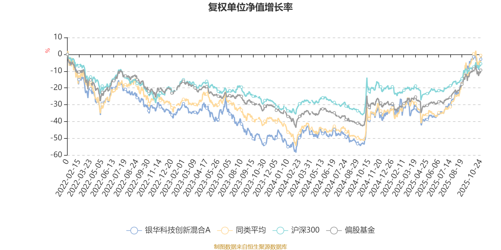 截至10月24日,银华科技创新混合A近三个月复权单位净值增长率为31.77%,位于同类可比基金131/229;近半年复权单位净值增长率为59.33%,位于同类可比基金90/229;近一年复权单位净值增长率为50.18%,位于同类可比基金119/213;近三年复权单位净值增长率为42.46%,位于同类可比基金79/158。