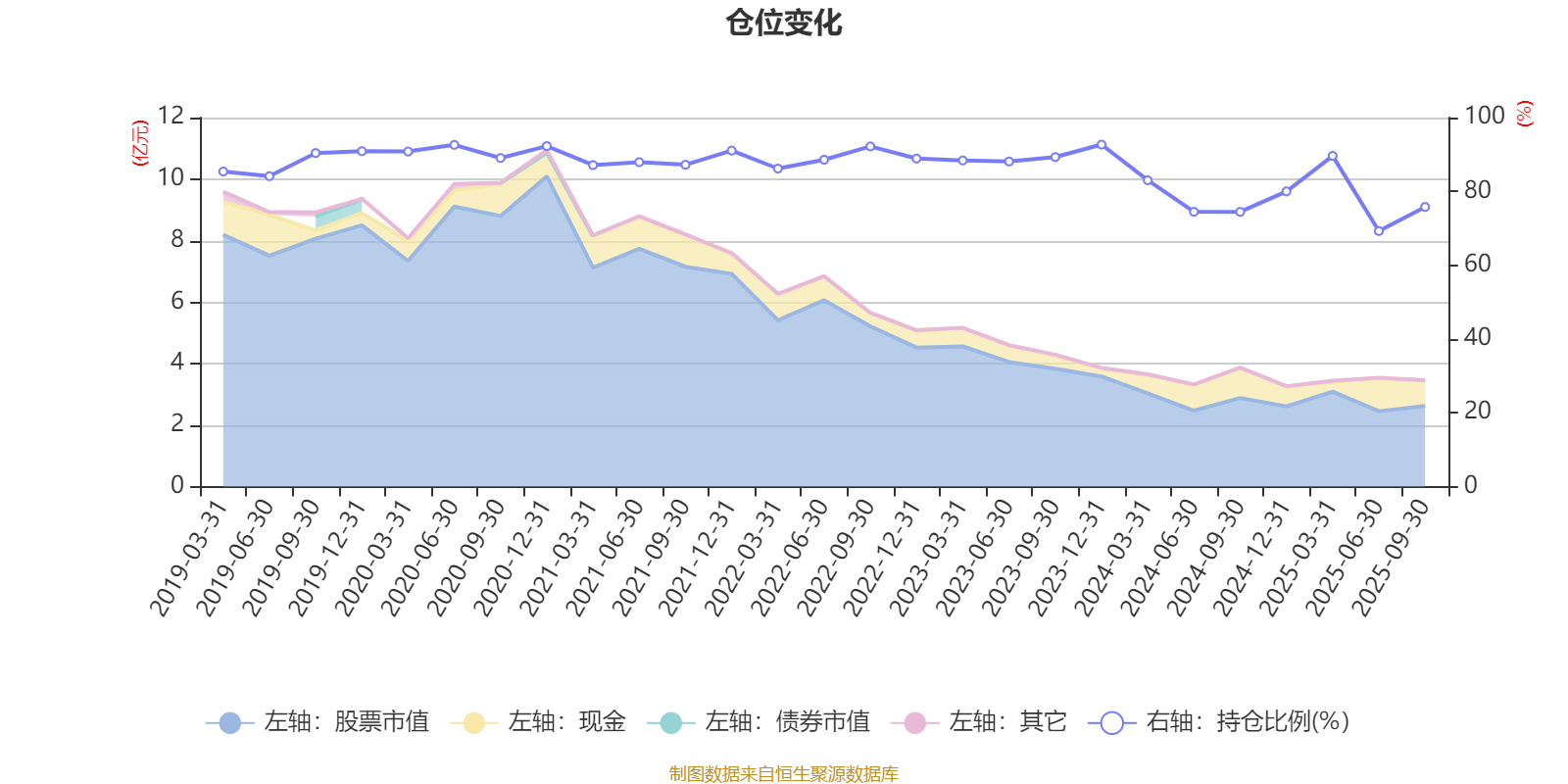 据定期报告数据统计,近三年平均股票仓位为82.83%,同类平均为85.51%。2023年末基金达到92.69%的最高仓位,2025年上半年末最低,为69.26%。