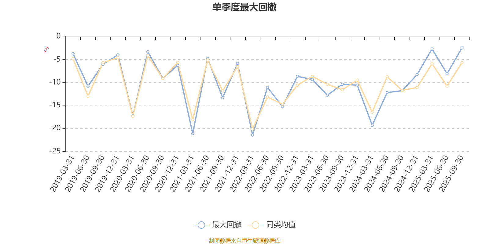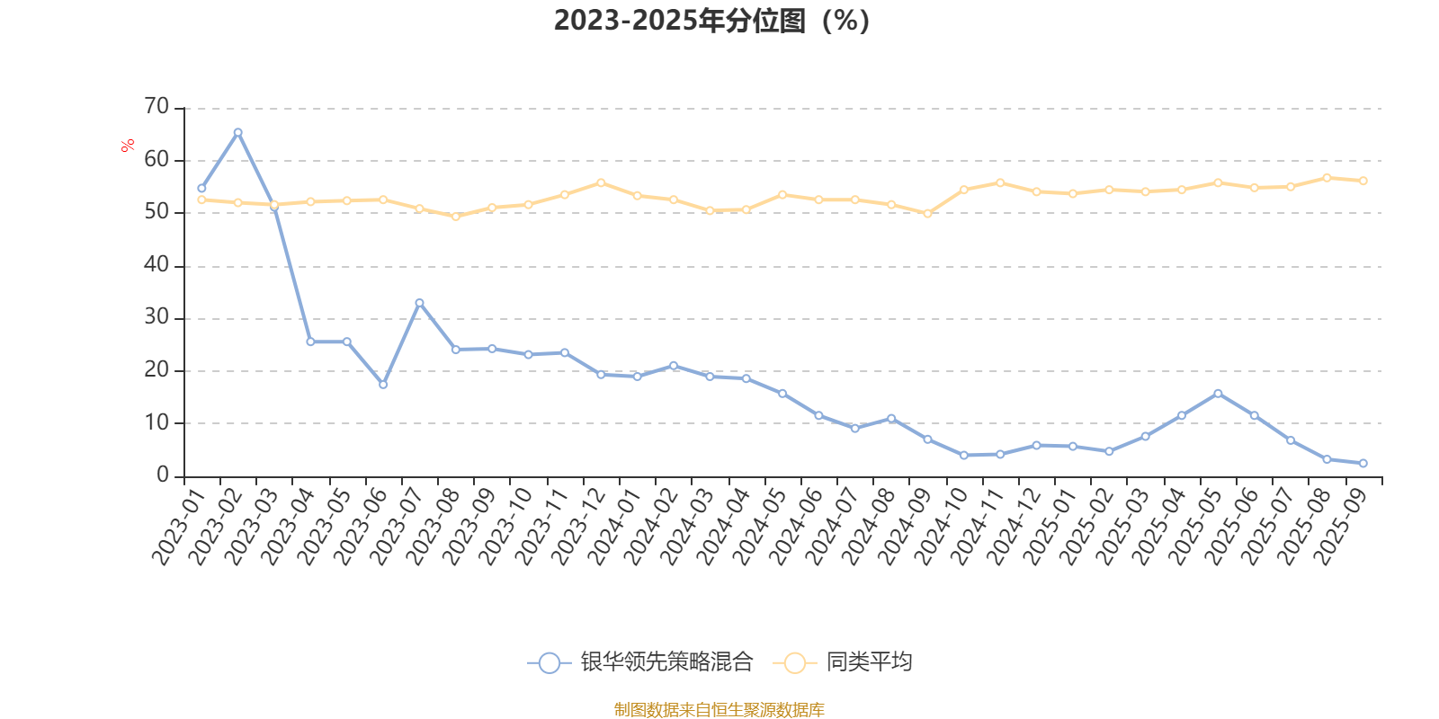 通过所选区间该基金净值增长率分位图,可以观察该基金与同类基金业绩比较情况。图为坐标原点到区间内某时点的净值增长率在同类基金中的分位数。