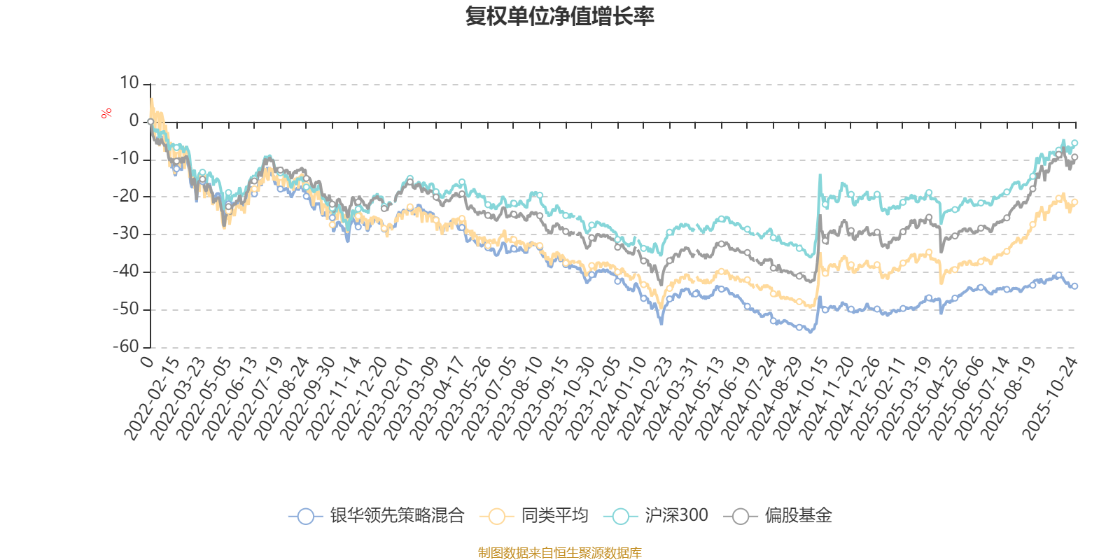 截至10月24日,银华领先策略混合近三个月复权单位净值增长率为1.07%,位于同类可比基金579/621;近半年复权单位净值增长率为6.27%,位于同类可比基金603/618;近一年复权单位净值增长率为11.35%,位于同类可比基金535/611;近三年复权单位净值增长率为-20.57%,位于同类可比基金502/518。