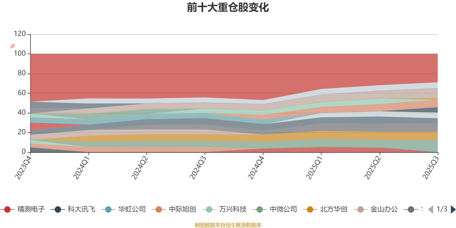 该基金持股集中度较高。截至2025年三季度末,基金重仓股分别是拓荆科技、中微公司、华海清科、北方华创、江淮汽车、富创精密、芯源微、中芯国际、中科飞测、华虹公司、华虹半导体。