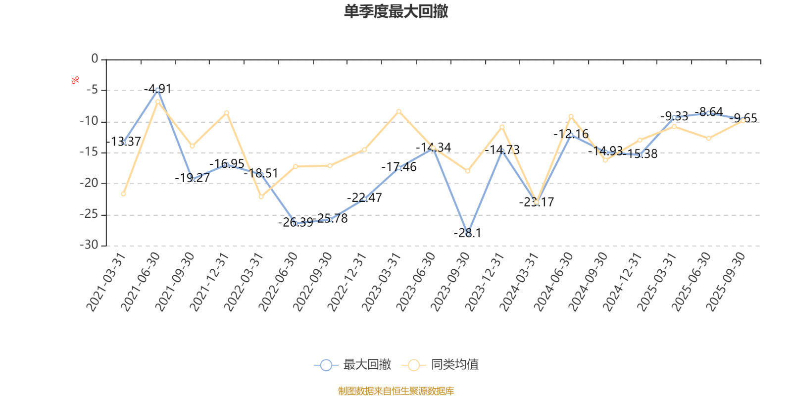 截至10月24日,基金近三年最大回撤为57.67%,同类可比基金排名152/159。单季度最大回撤出现在2023年三季度,为28.1%。