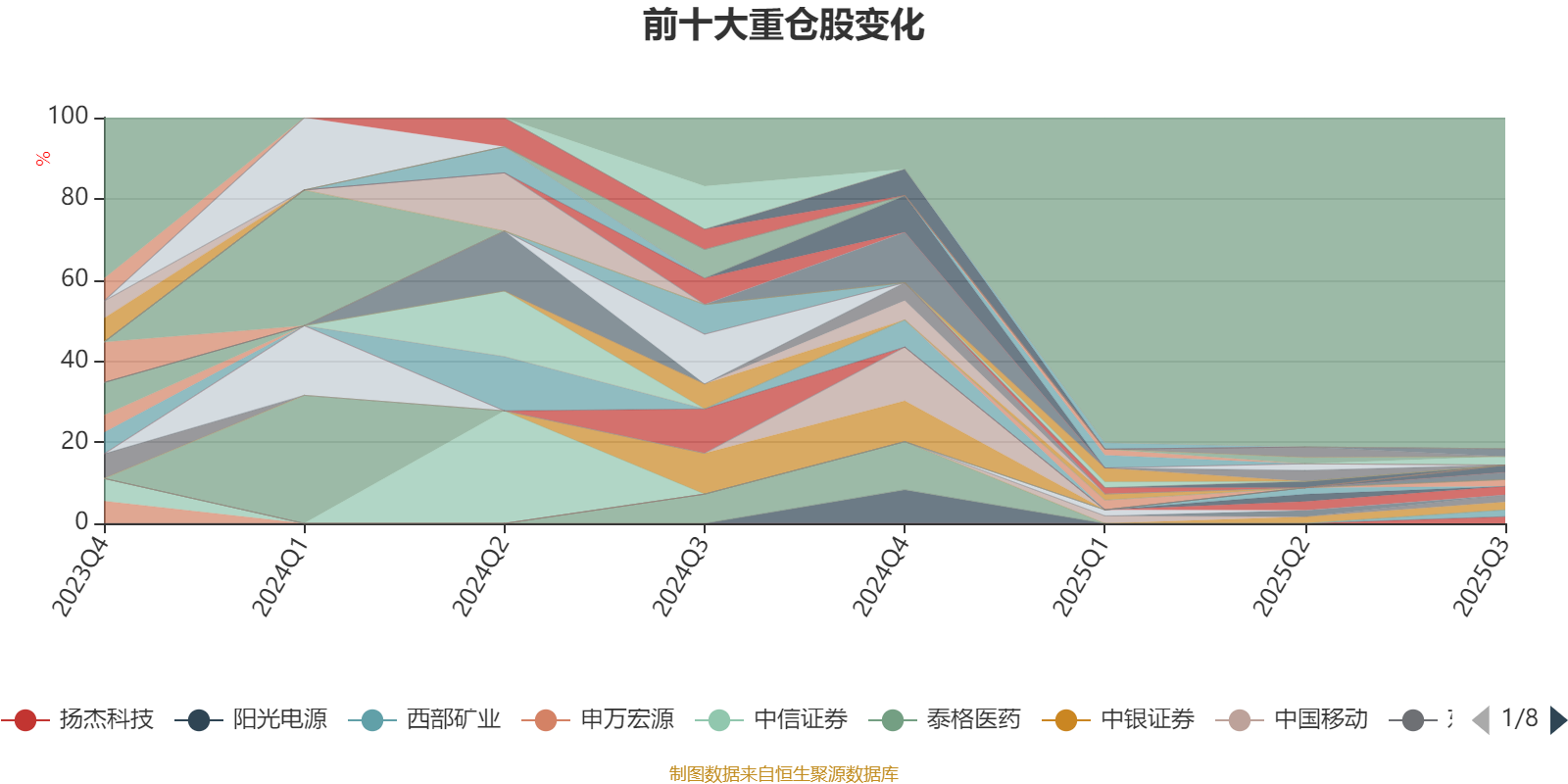 截至2025年三季度末,基金十大重仓股分别是环旭电子、拓荆科技、中银证券、华新水泥、横店东磁、养元饮品、东方电缆、西部矿业、均胜电子、扬杰科技。
