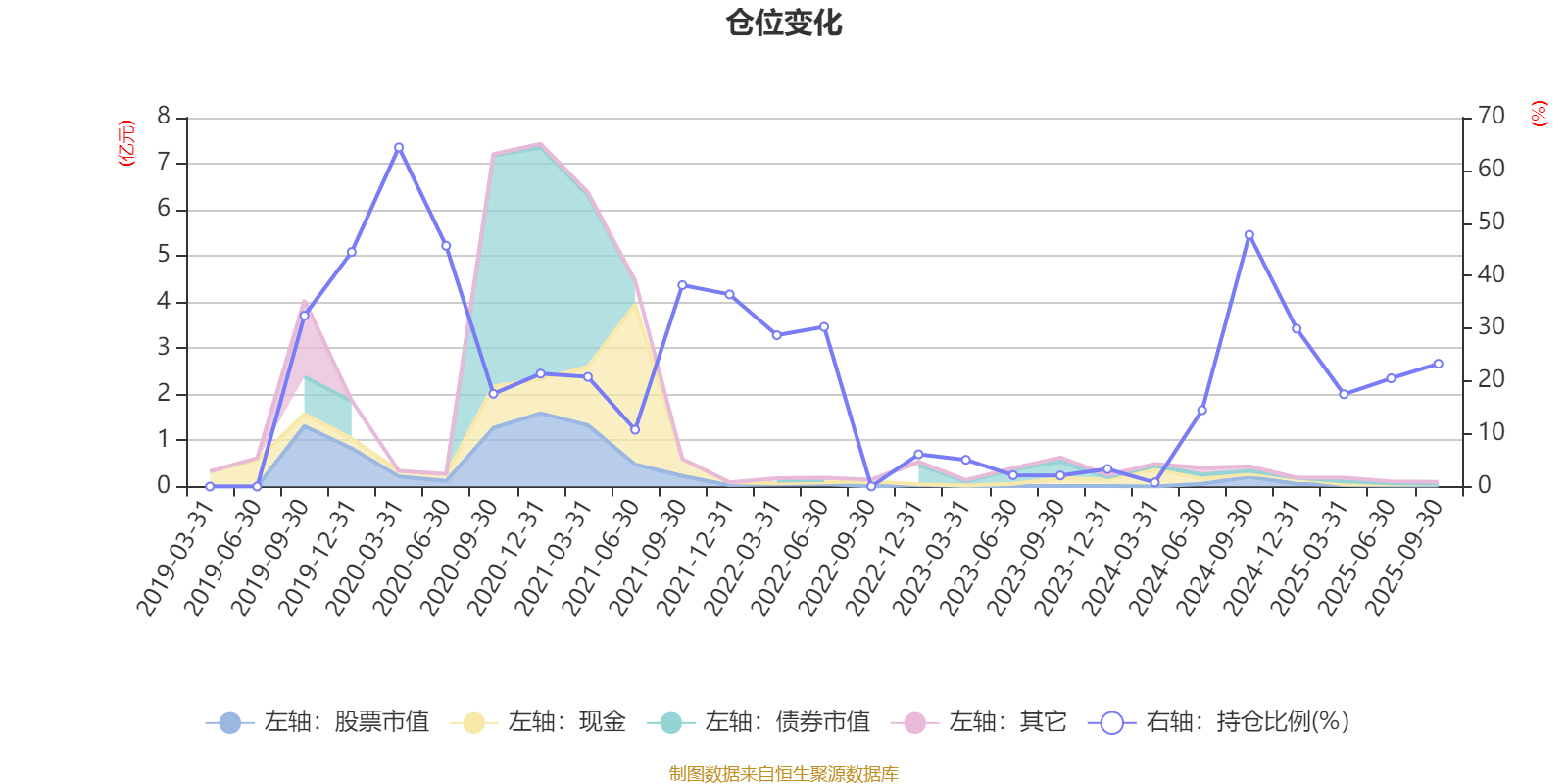 据定期报告数据统计,近三年平均股票仓位为14.43%,同类平均为72.16%。2020年一季度末基金达到64.35%的最高仓位,2022年三季度末最低,为0.03%。