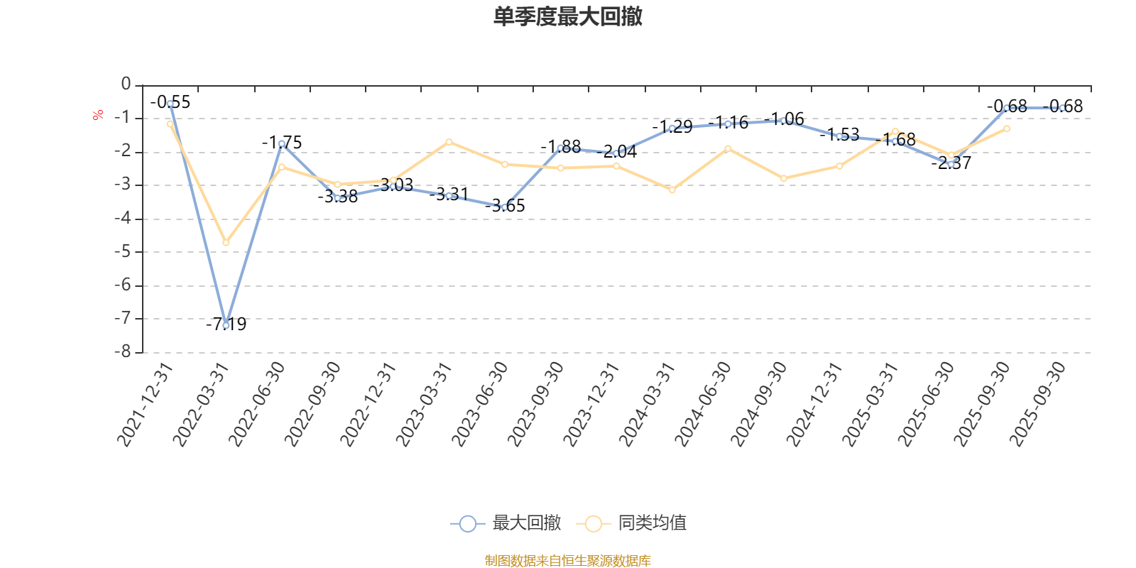 截至10月24日,基金近三年最大回撤为5%,同类可比基金排名201/552。单季度最大回撤出现在2022年一季度,为7.19%。