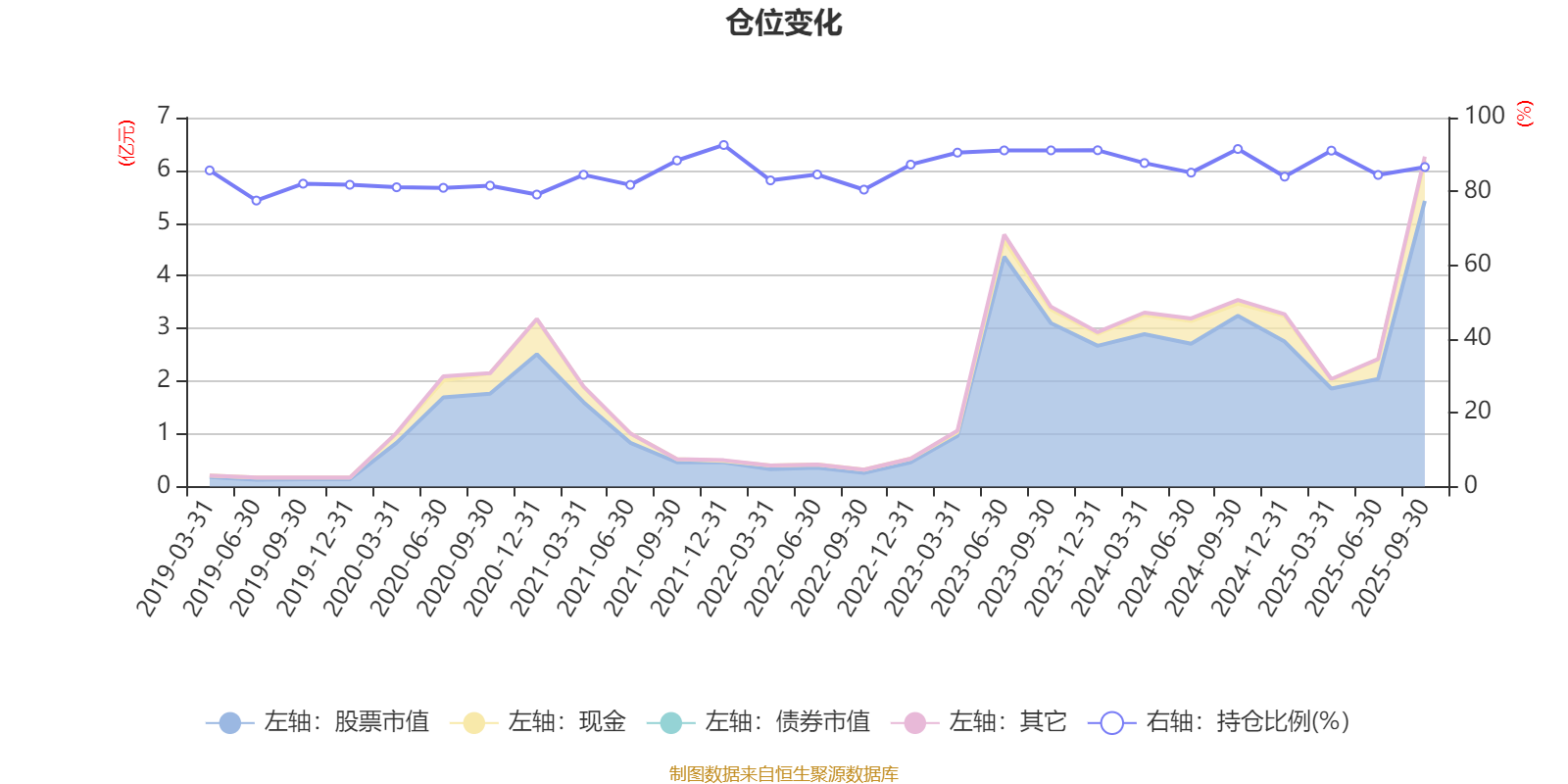 据定期报告数据统计,近三年平均股票仓位为88.46%,同类平均为72.16%。2021年末基金达到92.57%的最高仓位,2019年上半年末最低,为77.52%。